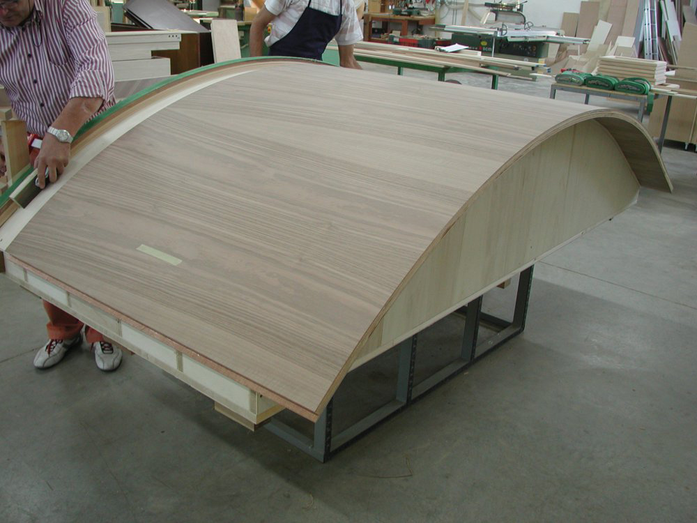Foto dalla falegnameria durante le fasi di realizzazione e ultimazione del lavoro.