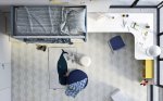 Letti a castello e pouf colorati si trasformano in elementi fantastici per giocare con la fantasia. Una cameretta luminosa e spaziosa, adatta a tutte le attività. Uno spazio per sperimentare, crescere e fantasticare.
